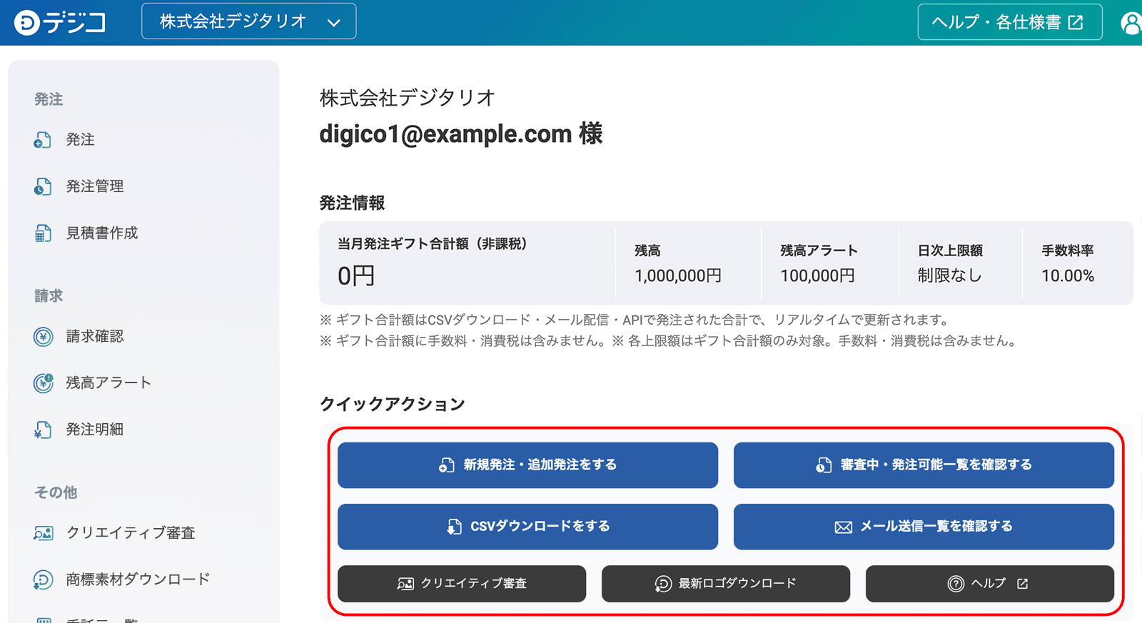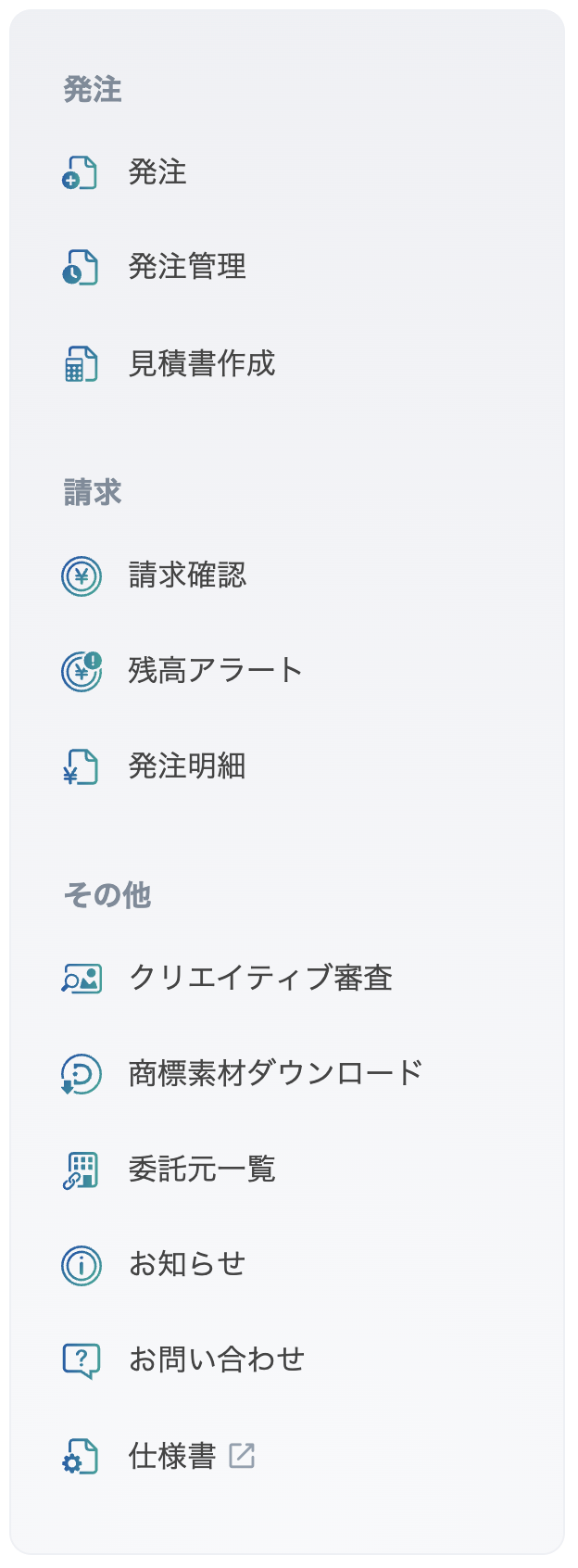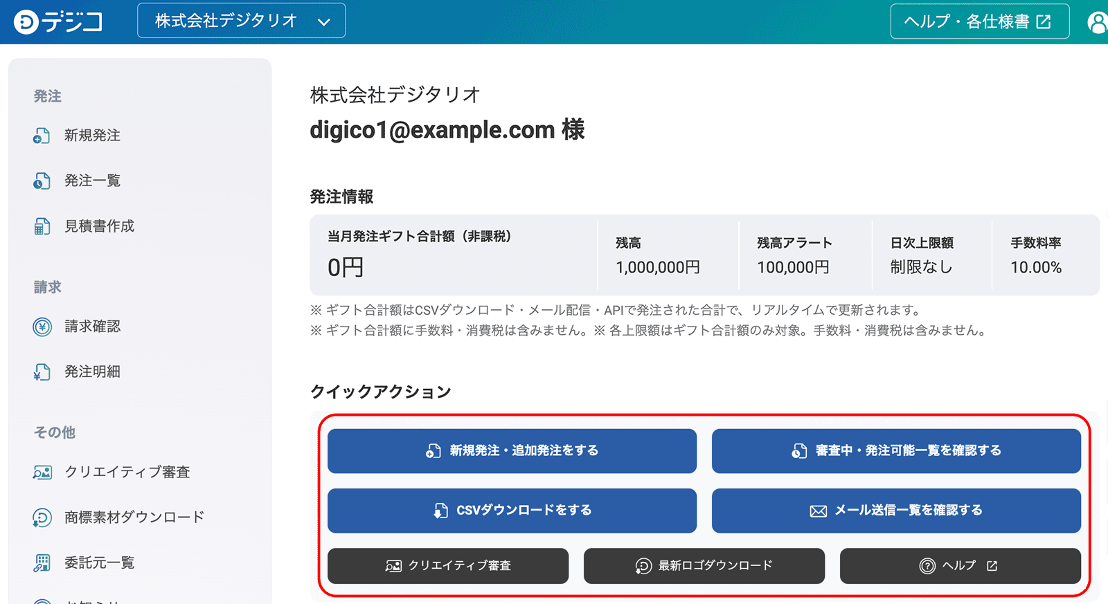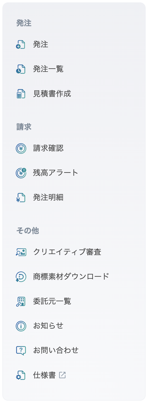 パートナー様がよくご利用されるメニューをまとめて表示しています。ご活用ください。